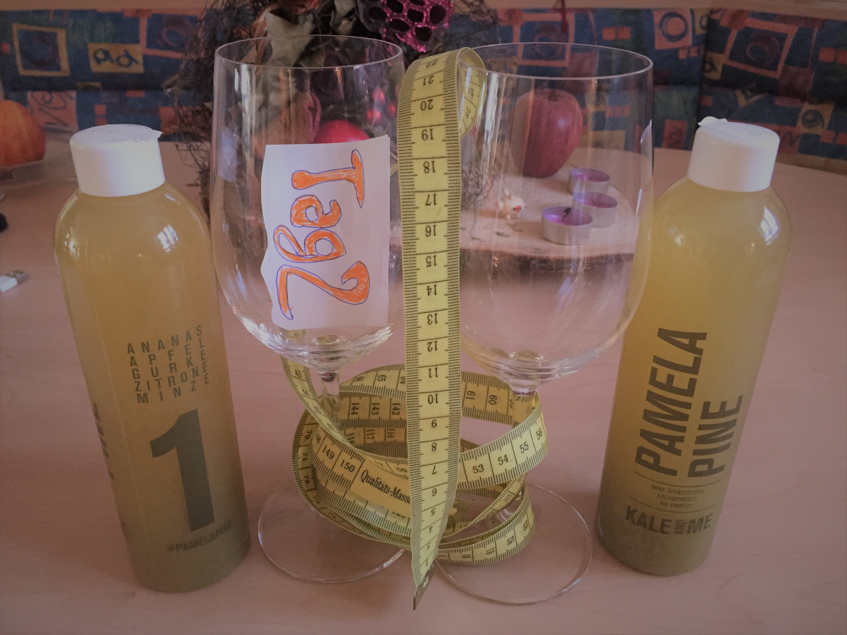 Die Waage verstärkt das sonnige Gefühl, indem es uns mit einem Kilo weniger (Mann) und 1,2 Kilo weniger (Frau) belohnt. Unser #DEBEC-Messprogramm* zeigt erfreuliche Einbußen beim Bauchumfang. Und komischerweise schmeckt uns der Saft Nummer 1 heute gleich viel besser. Ich habe ihn allerdings auch früher aus dem Kühlschrank genommen und er ist – für unseren Geschmack – so besser bekömmlich.