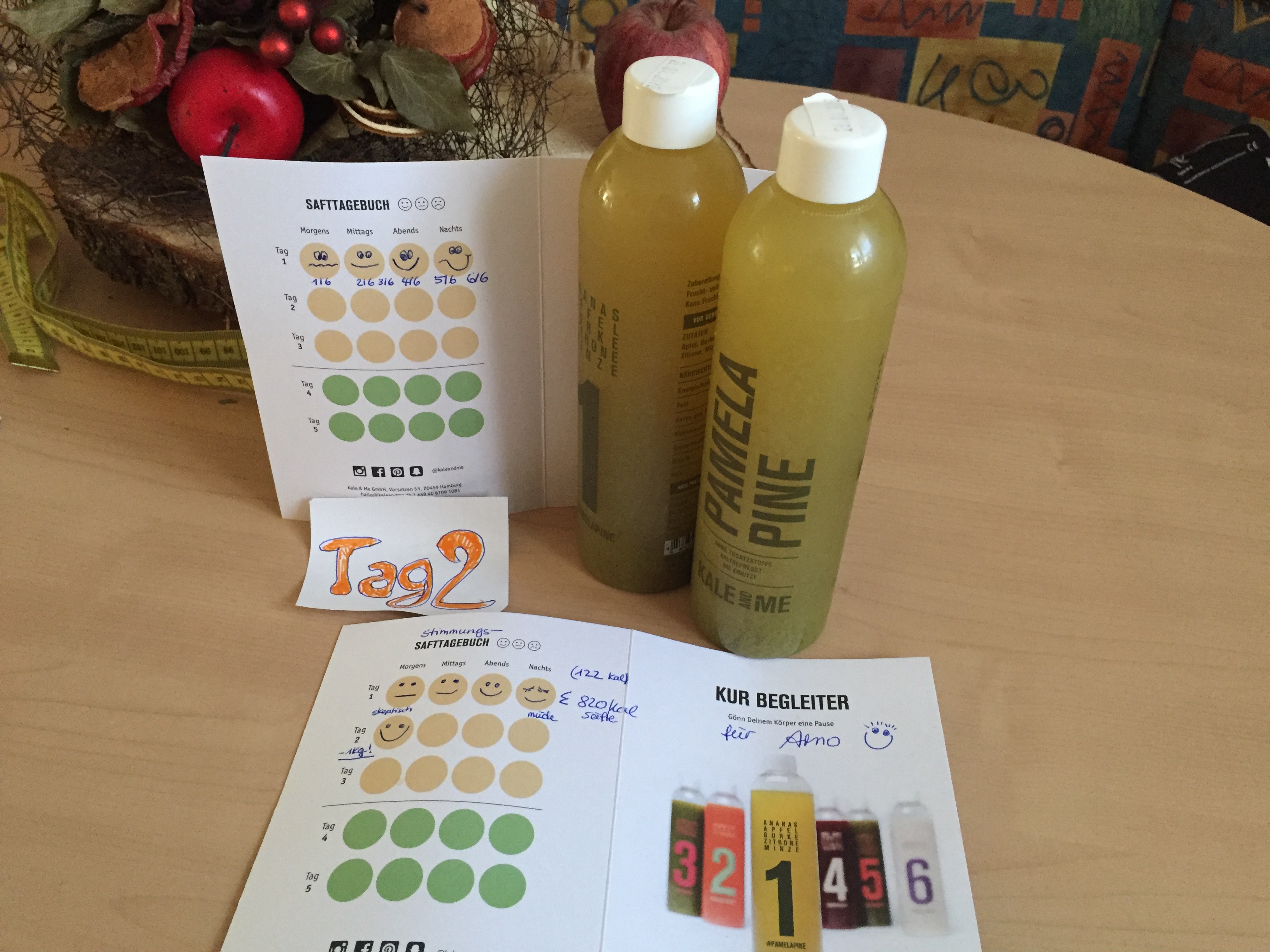 Fazit Tag 2: Der 2-Stunden-Rhythmus halten lässt sich besser einhalten. Hungergefühl bleibt im Verborgenen, was für ein so Kalorien-rigides Diätprogramm sehr angenehm ist. Gelüste auf irgendwas wollen sich selbst mit heftigsten Anstrengungen nicht einstellen. Gut, Bilder von Raclette, Pizza, Hirschragout oder Eisbecher und Pistazien etc. sollte man besser nicht anschauen. Und wenn im Fernsehprogramm gekocht wird oder ein Krimikommissar einen Döner verspeist – ja auch dann könnte man denken, es gibt Leckeres als Säfte auf dieser Welt. Aber gesamthaft drängt sich keine „Fress-Attacke“ auf, die die Kur gefährden könnten. Günstig wirkt sich die Brühe zwischendrin aus, da sie für etwas Warmes im Bauch sorgt und das Wohlbefinden steigert.